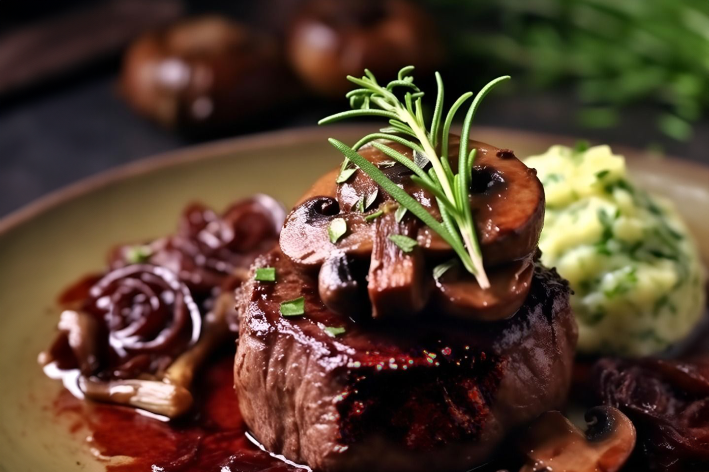 ビーフステーキのキノコソース